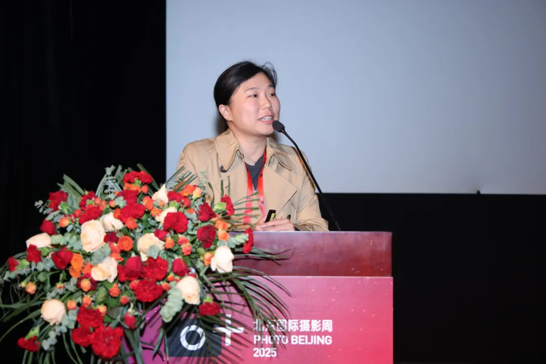 王帅的演讲主题为《摄影——作为文明载体与技术产物的双重变奏》。她通过探讨摄影在人类文明进程中的角色演变以及摄影的历史根基,指出:摄影既是文明的产物,也是文明的视觉档案,通过对历史的记录展现着多元文化,维系着文明的连续性与多样性,其核心价值在于超越记录的人文关怀。数字技术的变革,特别是AI带来的“新质之变”,体现在创作主体的大众化、影像物质性的持续消解以及真实性边界的模糊。这都深刻地重塑了影像的本体。她结合项目案例分析,提出:建立人机协同的创作新模式,形成跨学科的复合型表达,并在数字时代重返现场、延伸感知,从而在传承与创新中为影像锚定新的文明坐标。